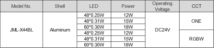 · Colors: RGB, RGBW, pure white, warm white, and amber yellow. Light source: High power 1W/3W